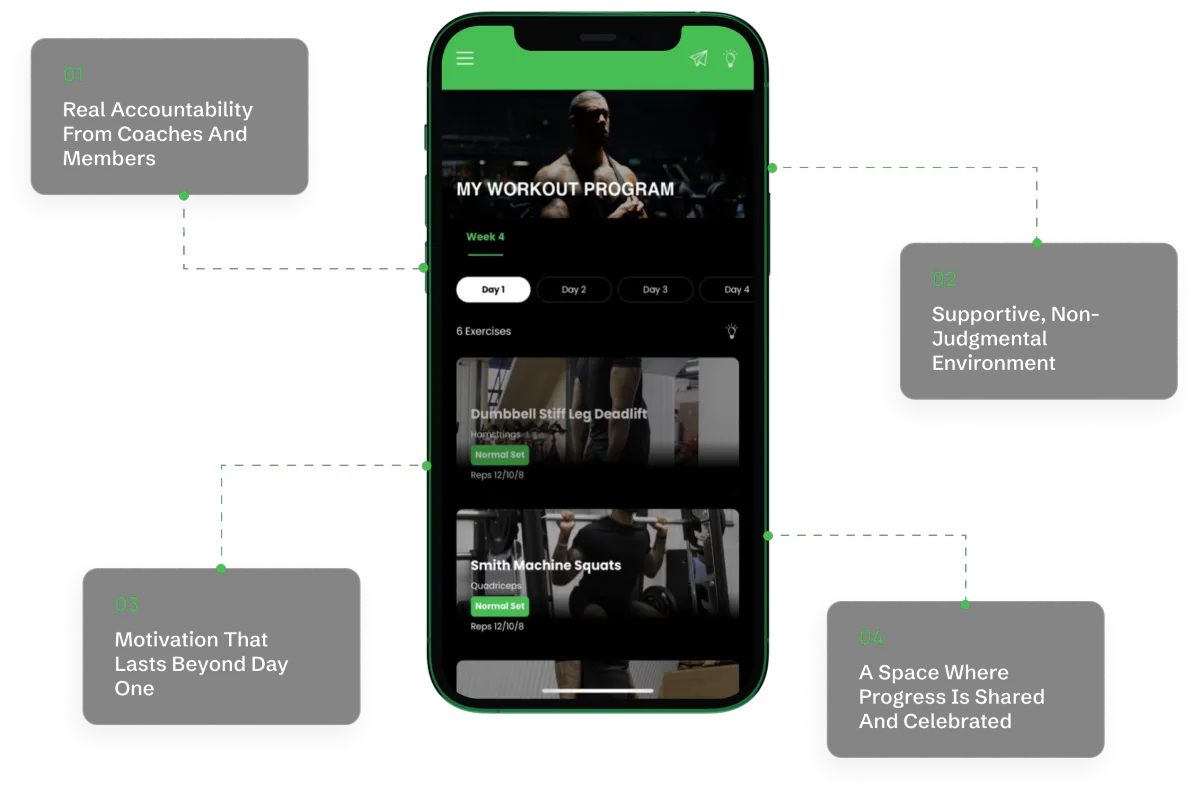 Whether you’re training at home or in the gym, our app-based programs and coaching support you every step of the way.